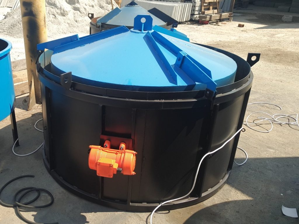 Для виготовлення бетонного кільця форму необхідно встановити на рівну поверхню, після чого залити бетон і ретельно ущільнити його за допомогою вібратора. Далі бетонну суміш залишають приблизно на 50 хвилин, після чого виконують розбирання внутрішнього та зовнішнього кільця. Зручно, що для виробництва бетонних кілець за цією технологією не потрібна кран-балка.